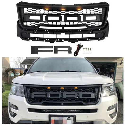 Grille For 2016 2017 2018 Ford Explorer Raptor Grille W/E 3 Amber LED Lights& Letters Matte Black