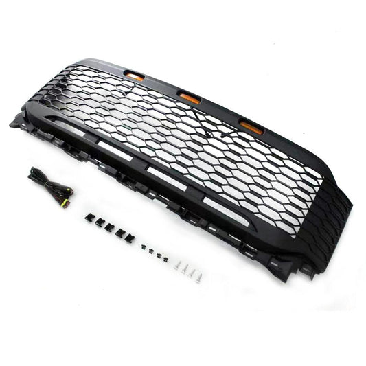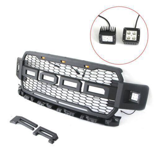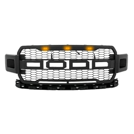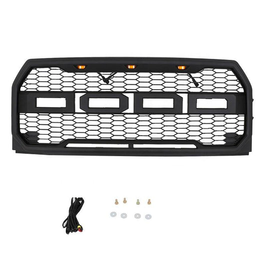 Grille For 2018 2019 2020 Ford f150 Raptor Style Grille W/E 3 Amber LED Lights& Letters Matte Black